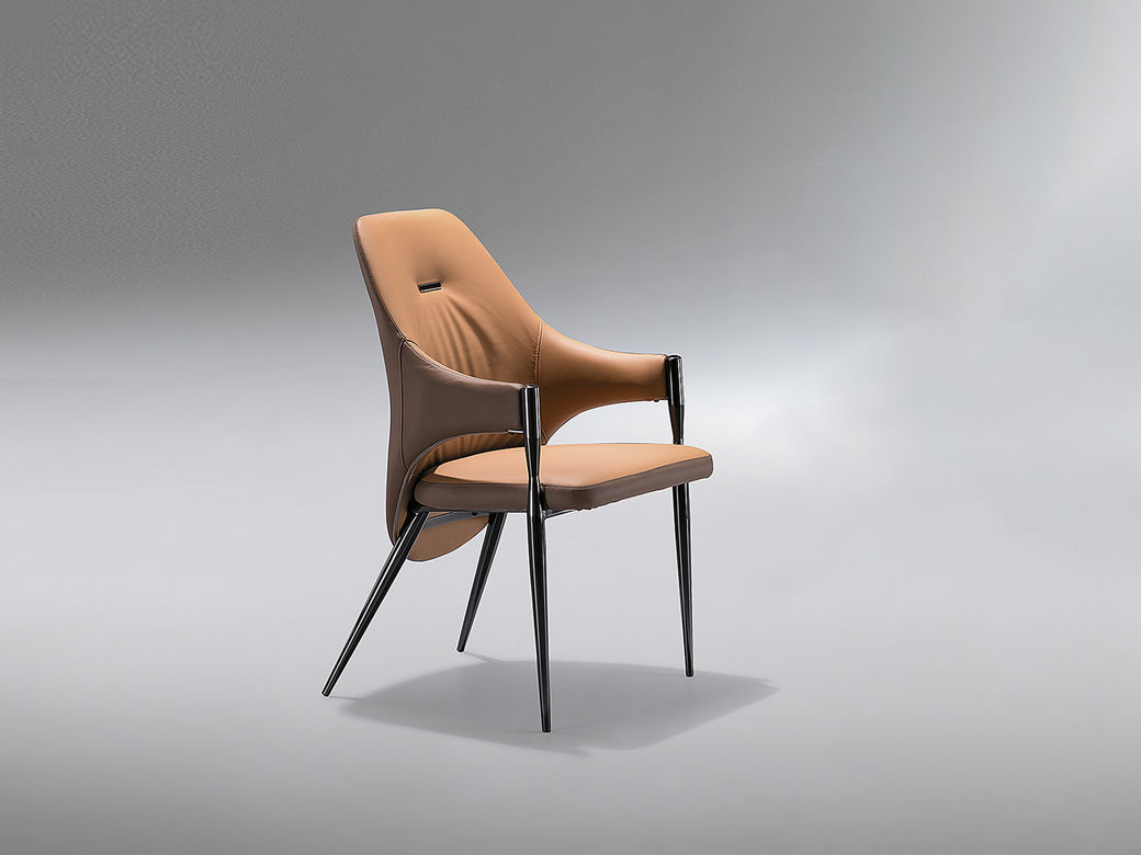 小红书系列 现代简约 不锈钢黑钛+猫爪皮 前橙后咖 餐椅1把