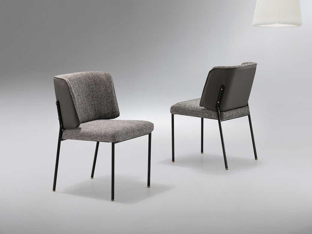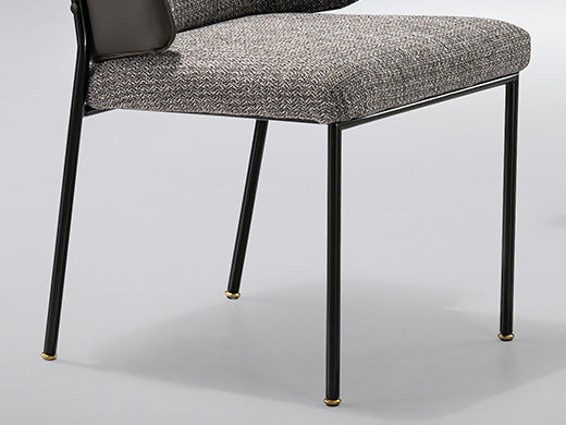 小红书系列 现代简约 碳素钢亮黑+西皮+麻布 前粗麻后西皮灰色 餐椅1把