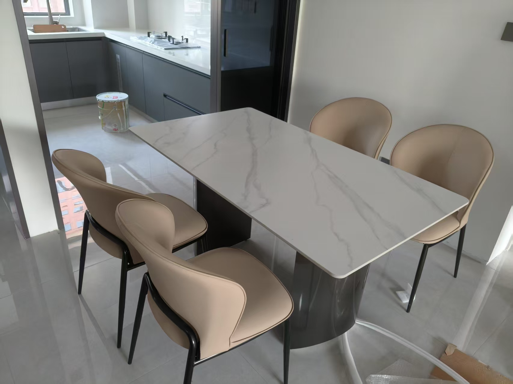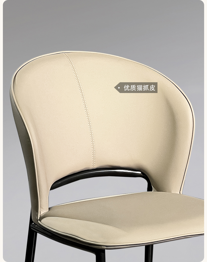 【套餐专享价】每屋优享系列 现代简约 碳素钢+猫抓皮 米色 餐椅1把