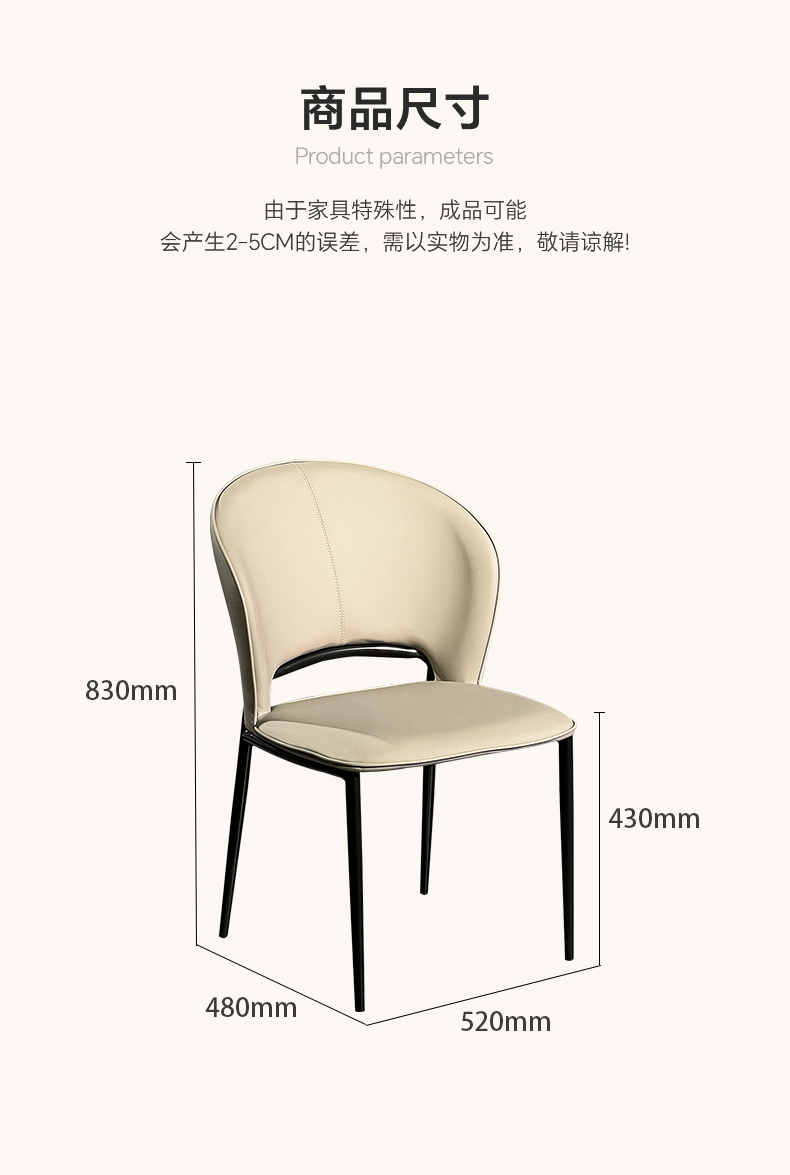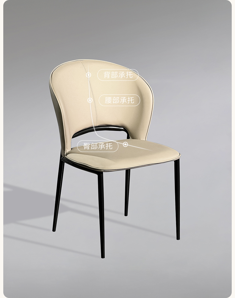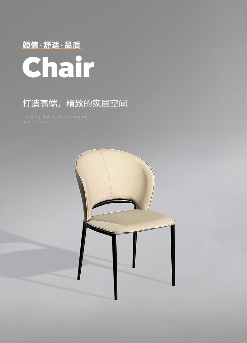 【套餐专享价】每屋优享系列 现代简约 碳素钢黑砂+西皮 米色 餐椅1把