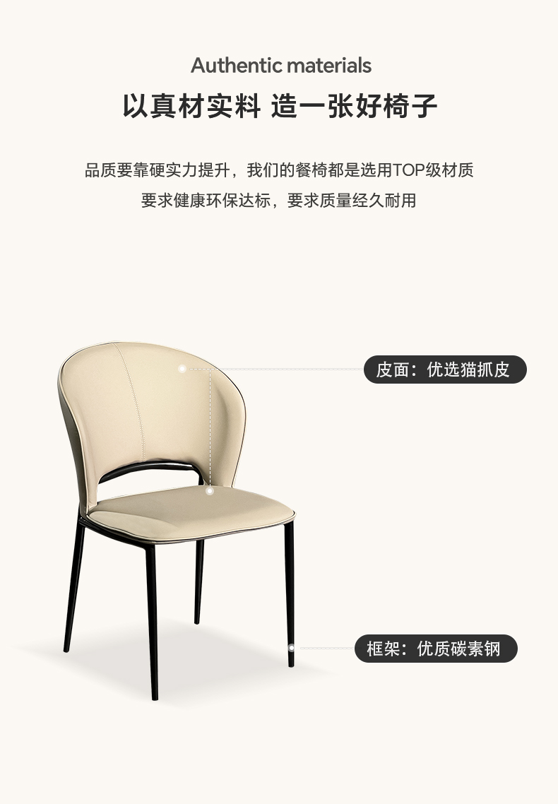 【套餐专享价】每屋优享系列 现代简约 碳素钢+猫抓皮 米色 餐椅1把 |