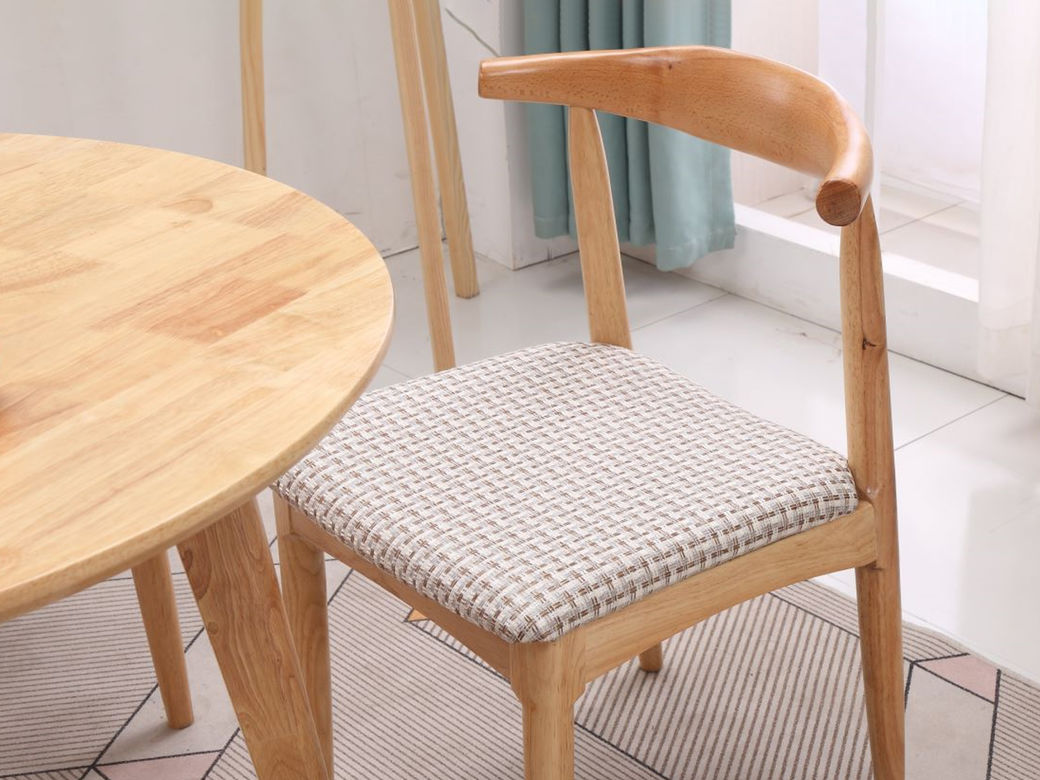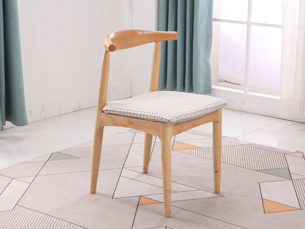 简森曼 北欧风 橡胶木框架,坐板米格布,填充海绵 原木色 牛角椅1把 【实木拼接工艺】
