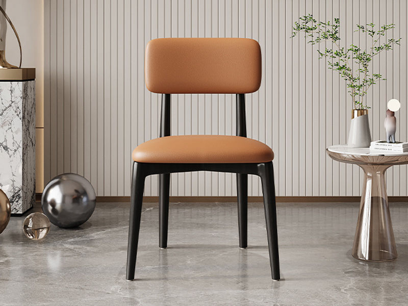 小红书系列 现代 白腊木烟熏色+橙色超纤皮 餐椅1把 (两张起订)