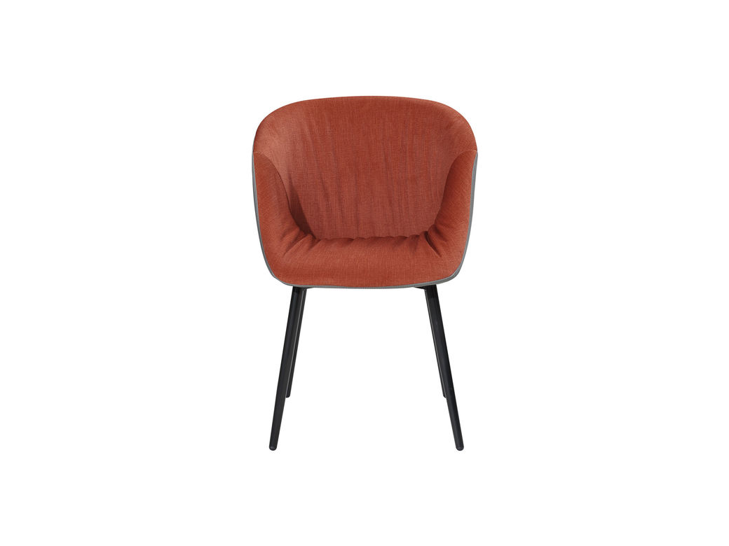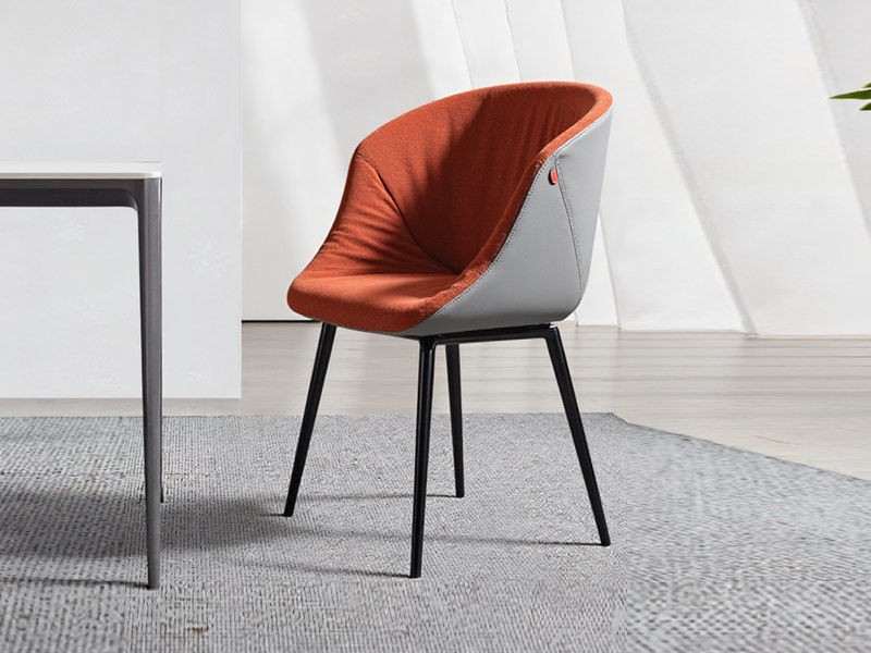 皇朝家居 现代 枪黑色五金脚+致宇2068-25土黄皮+灰色竖条皮 橙色 餐椅