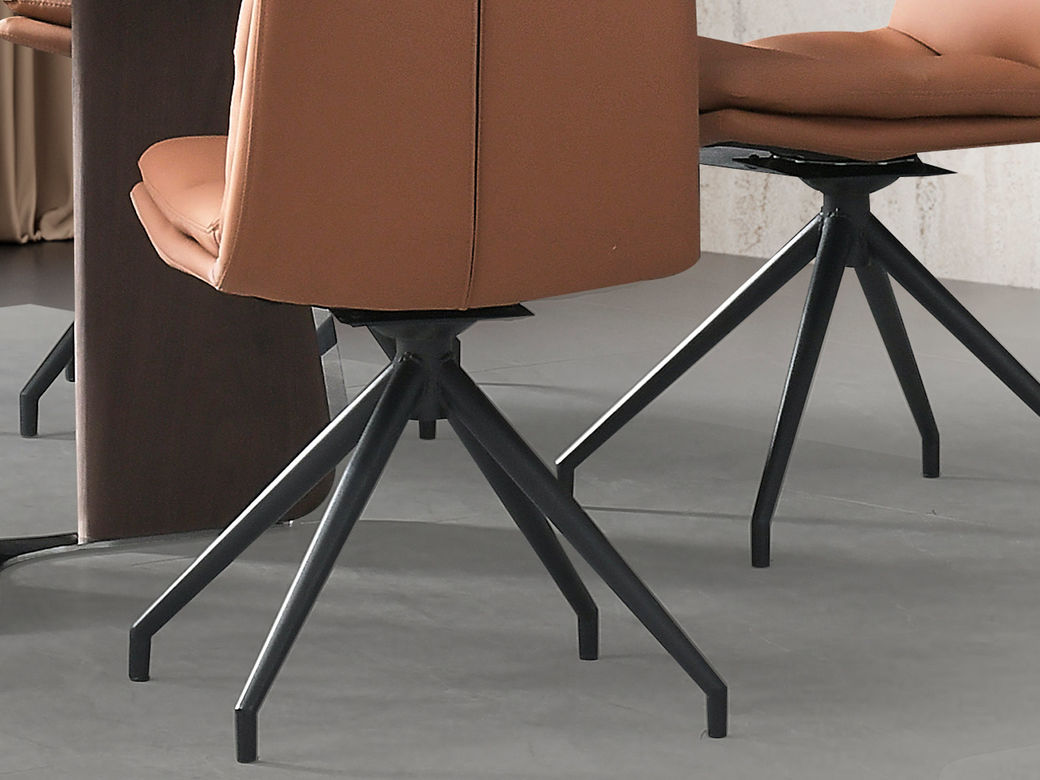 皇朝家居 现代 枪黑色五金脚+致宇2068-25土黄皮+灰色竖条皮 橙色 餐椅