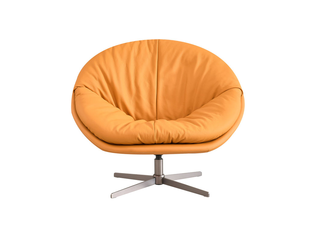皇朝家居 现代 头层黄牛皮+仿皮+不锈钢脚+公仔棉 橙色 休闲椅
