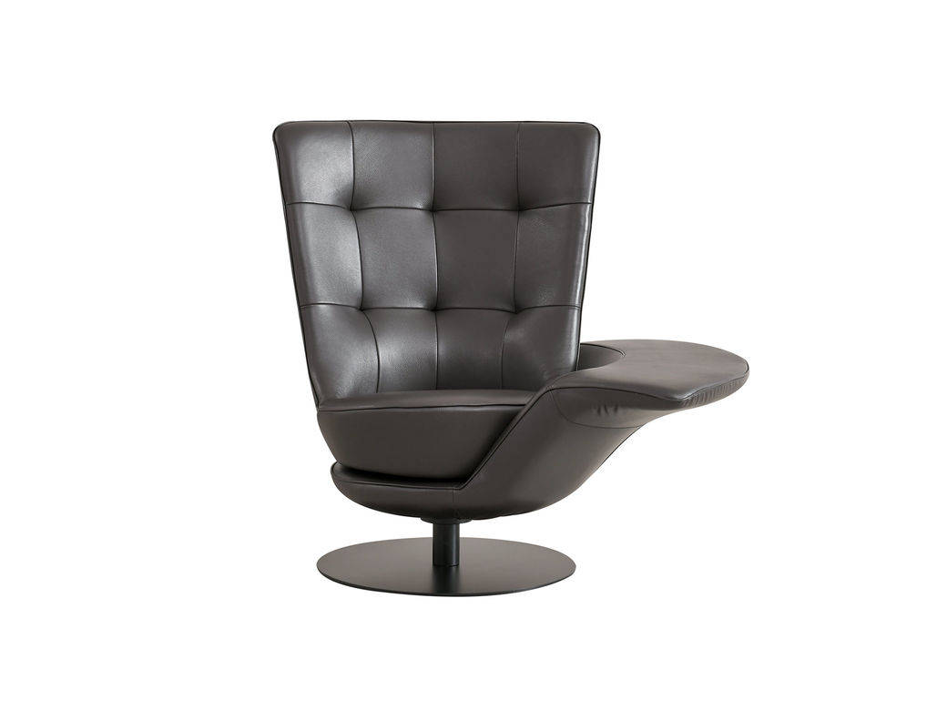 皇朝家居 现代 头层黄牛皮+仿皮+高密度海绵+不锈钢底座 黑色 休闲椅