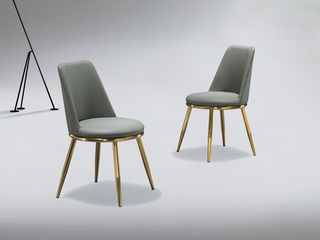 甄品家具 现代简约 不锈钢钛金+西皮 灰色 餐椅1把