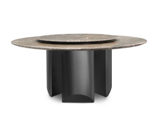 Milos米洛斯 极简 天然大理石面 不锈钢黑拉丝脚架 1.6米餐桌带转盘