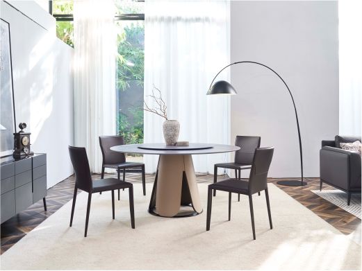 小红书系列 极简 桌面:岩板+功能件脚架:不锈钢钛金+PU皮 1.35米旋转功能餐桌