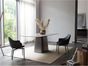 缔造 极简 古木纹天然石面+ 高密度板贴白蜡木皮做碳灰色脚+碳素钢喷哑黑色脚 2.2米餐桌