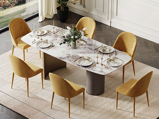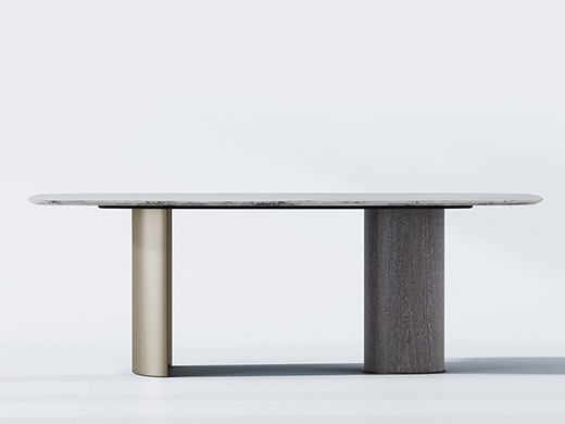 鹿屿 极简轻奢 天然采晶石巴赛罗娜金+金属+鸡翅木皮 2米餐桌