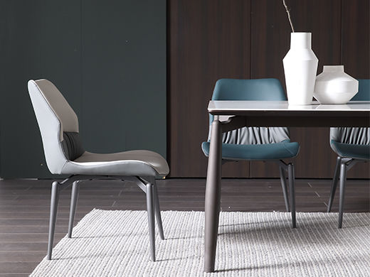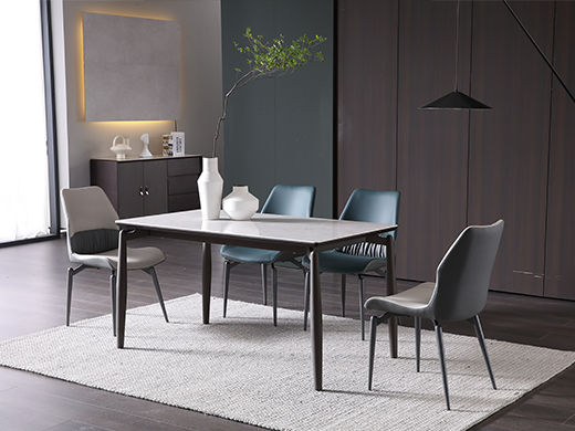 A系优选 现代简约 餐桌:岩板+碳素钢脚架 餐椅:碳素钢脚架+PU皮 1.4米餐桌+4把餐椅 (含底板)¥4008