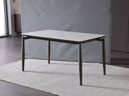 梵歌 现代简约 E1环保中纤板+环保水性漆 6MM岩板 哑光大花白 碳素钢五金脚 浅灰 1.35米餐桌