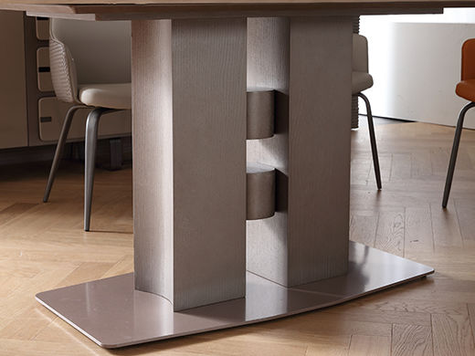 梵歌 现代简约 E1环保中纤板 环保水性漆 烟熏木皮 高密度三胺板抽屉+三节缓冲导轨 抽面3MM岩板+15MM人造大理石面 碳素钢五金脚 烟熏色 1.35米圆餐桌¥1888