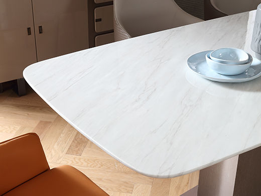 梵歌 现代简约 E1环保中纤板+环保水性漆 6MM岩板 哑光大花白 碳素钢五金脚 浅灰 1.35米餐桌¥3610