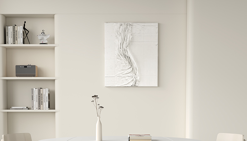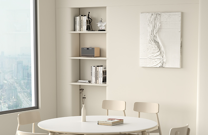 云端 奶油风 浮雕线条+岩板面+板材柜体+实木多层板承托板 白色 1.2米圆形餐桌¥2386