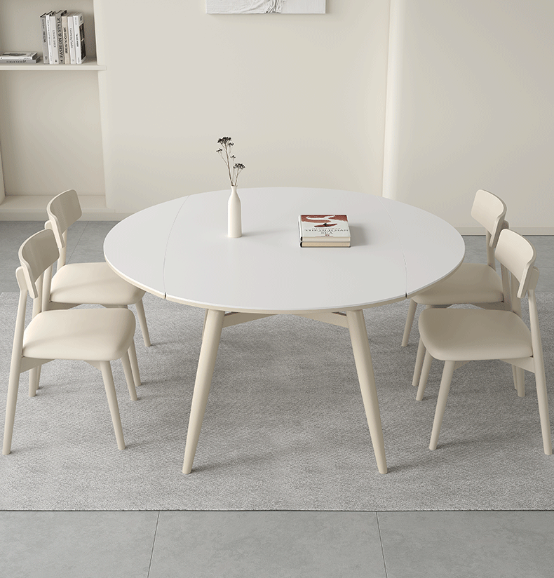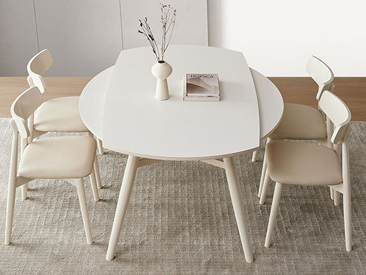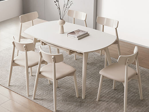 云端 奶油风 实木脚+实木导轨 纯白岩板面 1.3米 伸缩 折叠 功能1.3米餐桌 |