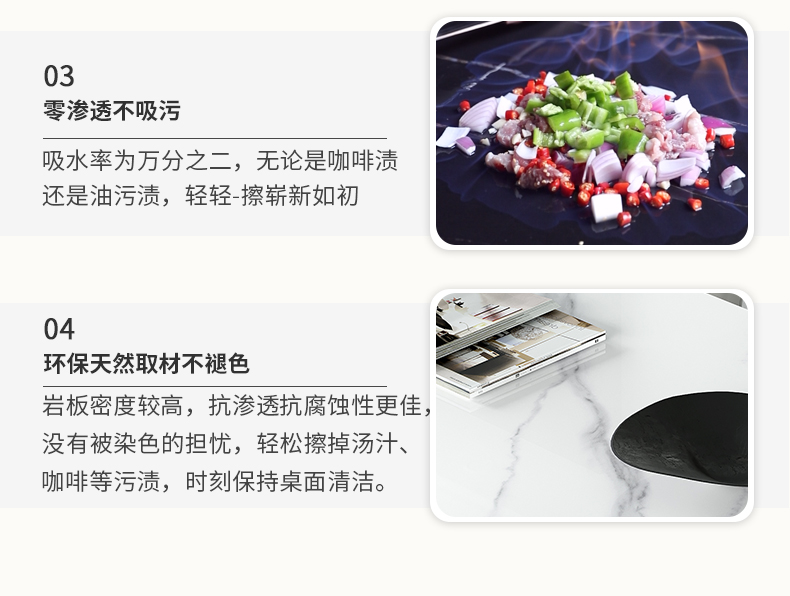 云端 奶油风 亮不锈钢底架+E1板材烤漆 实木多层底板+亮光雪山石岩板 1.4米餐桌¥3610
