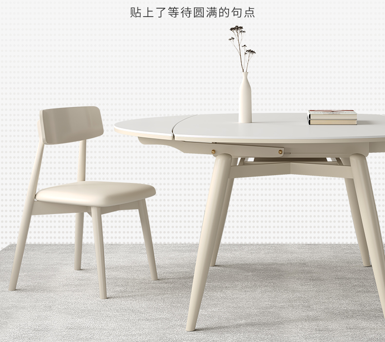 云端 奶油风 实木脚+实木导轨 纯白岩板面 奶白色 1.3米拉伸餐桌