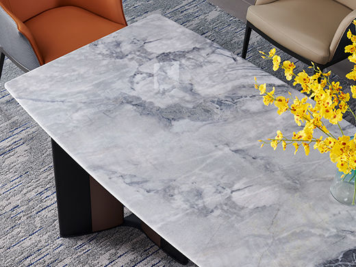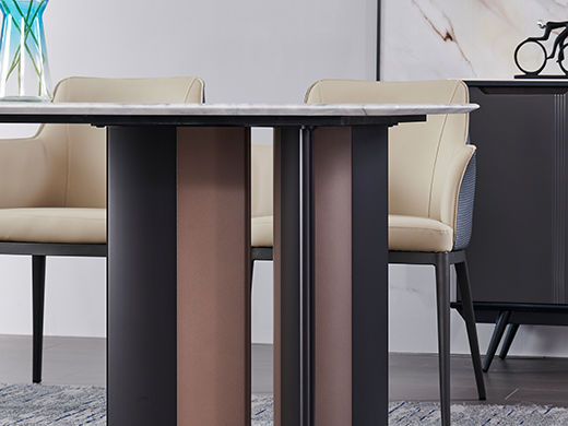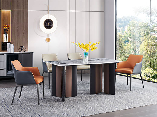 梵纳意简 极简 电镀不锈钢+贴纸大理石+实木多层板 1.4米餐桌