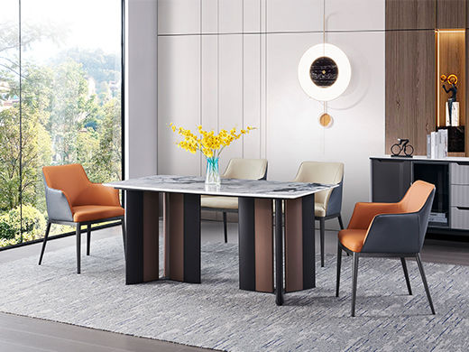 梵纳意简 极简 轻奢 电镀不锈钢+贴纸大理石+实木多层板 1.8米餐桌¥8011