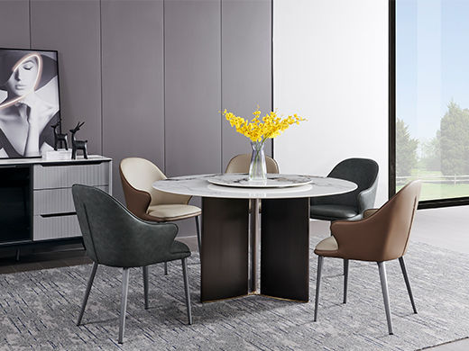 甄品家具 极简 桌面:岩板+底板脚架:黑砂碳素钢【配转盘】 1.35米餐桌¥4791