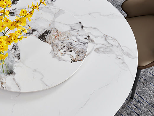 Minttu明途 极简 不锈钢拉丝+12厘亮光岩板面 1.35米圆餐桌(含转盘) |