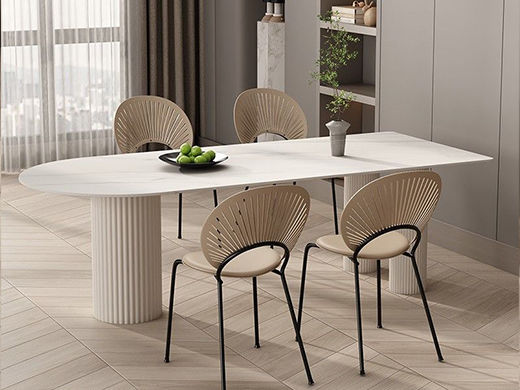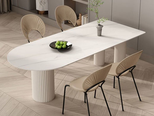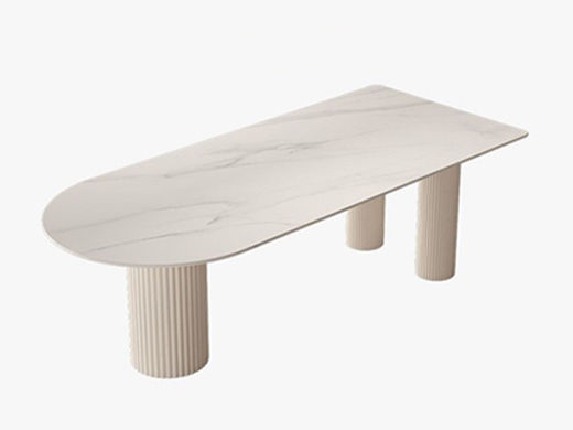 云端 奶油风 实木线条脚+实木多层板底板+哑光雪山石岩板 白色 1.4米餐桌