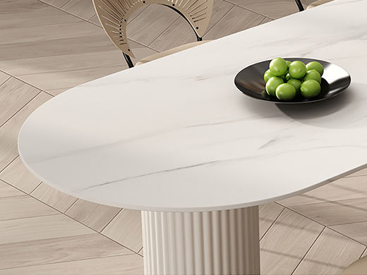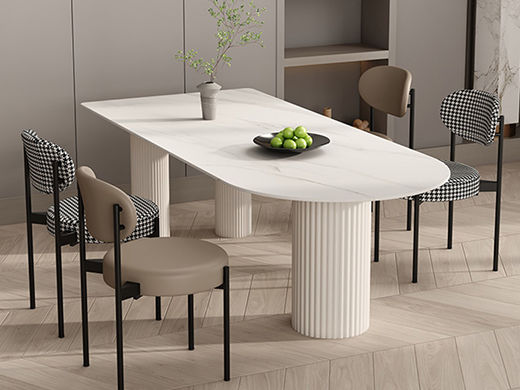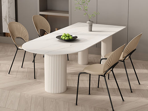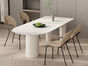 云端 奶油风 实木线条脚+实木多层板底板+哑光雪山石岩板 白色 1.4米餐桌