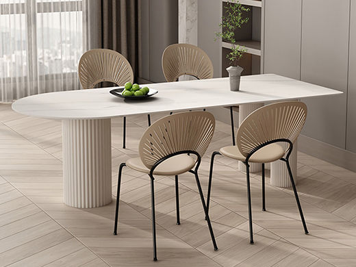 B系优选 奶油风 碳素钢底架+亮光/哑光 岩板面 1.4米餐桌+4把餐椅(含底板)¥2386