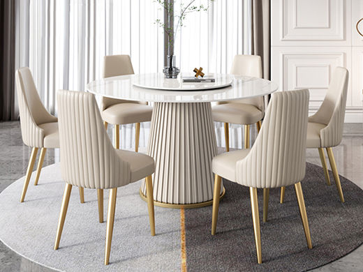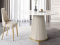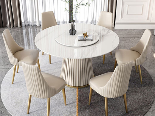 柏思戈 轻奢 碳素钢扪皮+不锈钢钛金底架+亮光岩板面 多层板底板 奶白色 1.2米圆形餐桌(不含转盘)