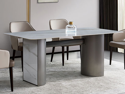 拜洛迪 轻奢 灰钛不锈钢装饰岩板底座+岩板台面 白色 1.4米餐桌