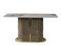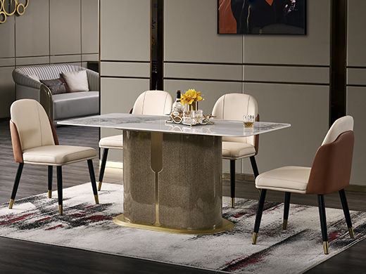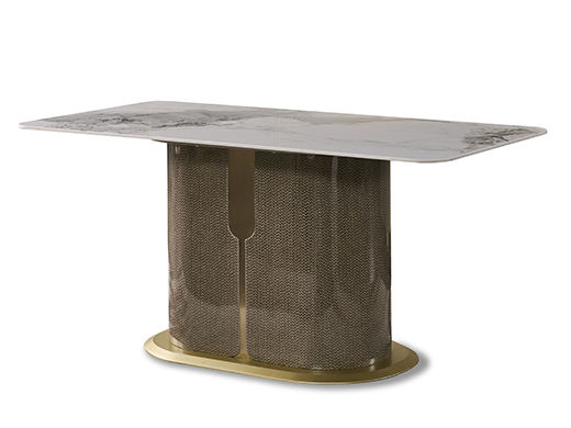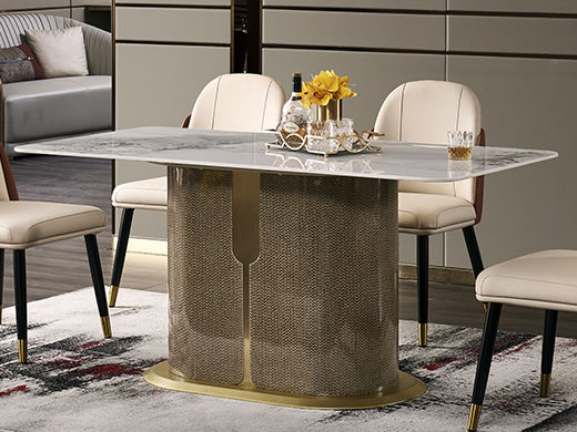 拜洛迪 轻奢 装饰皮革+拉丝香槟金不锈钢+磨砂岩板 1.6米餐桌