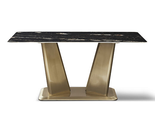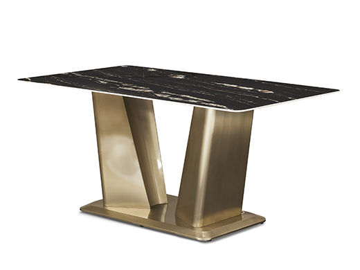 拜洛迪 轻奢 拉丝香槟金不锈钢+大理石 黑色 1.6米餐桌¥6727