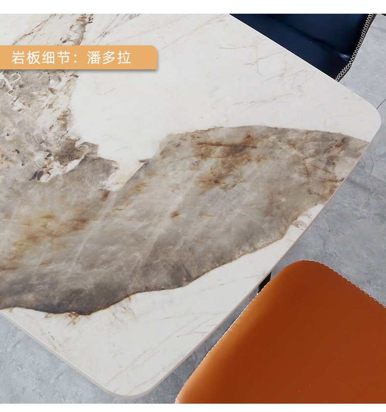 B系优选 现代简约 餐桌:碳素钢底座+12mm马肚形岩板+多层板底板 餐椅:碳素钢底座+PU皮 1.4米餐桌+4把餐椅(含底板)¥4008