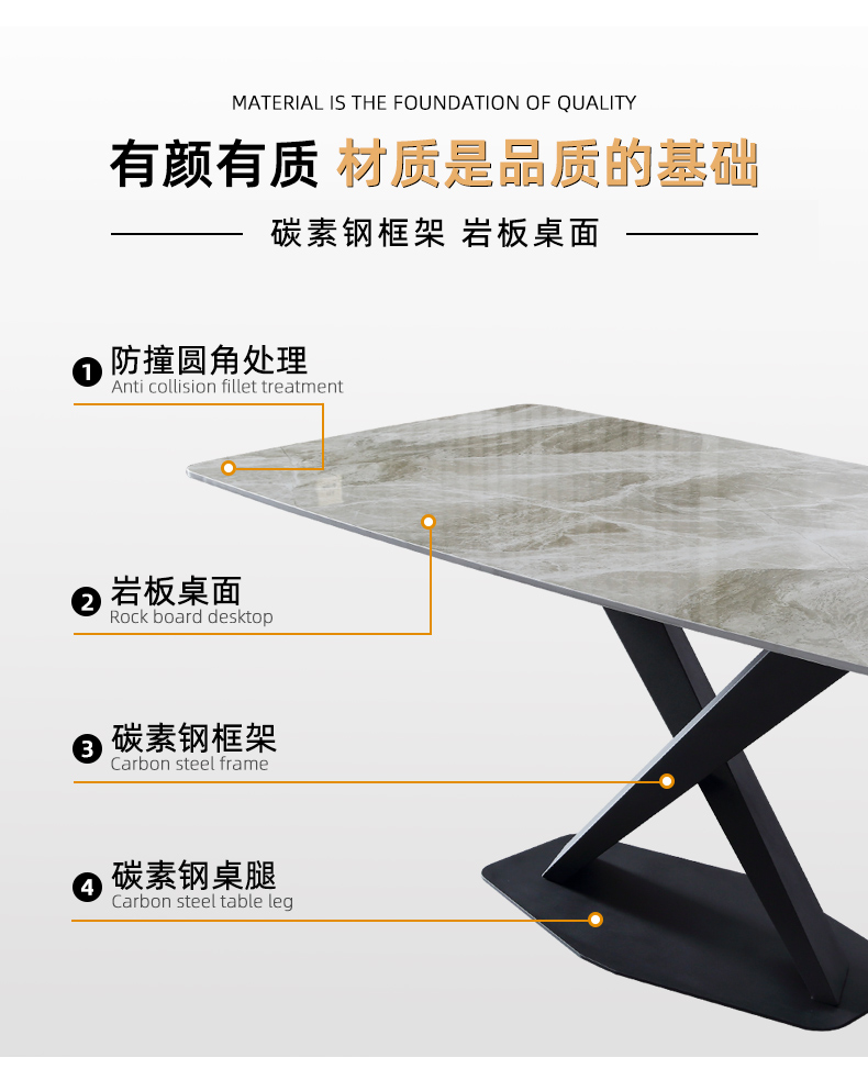 A系优选 现代简约 碳素钢底架+亮光岩板面+多层板底板 1.4米餐桌 (含底板)¥1911