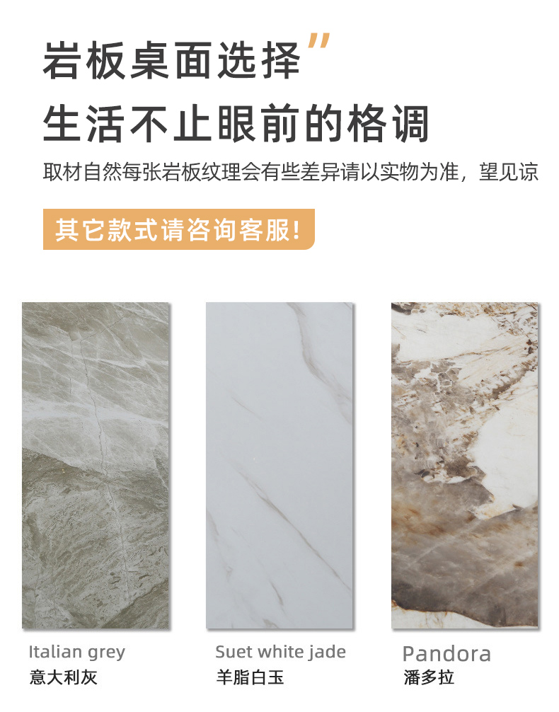 B系优选 现代简约 碳素钢五金脚+12mm岩板面 1.4米餐桌(包含底板)¥2330