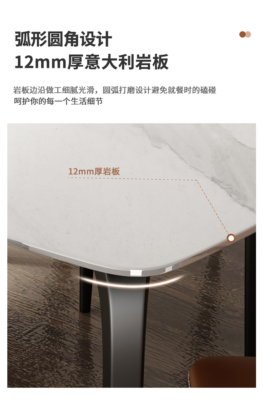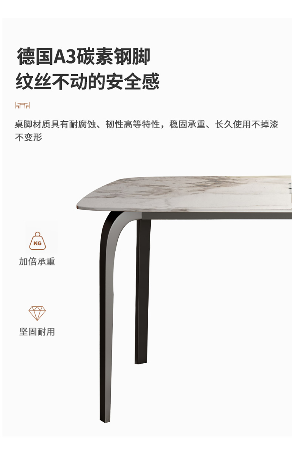 A系优选 现代简约 餐桌:3A碳素钢五金支架+12mm优质岩板 餐椅:西皮面料+太空绵+高回弹海绵+夹板+碳素钢架脚+塑胶防刮脚钉 1.4米餐桌+4椅 (不含底板)¥3402