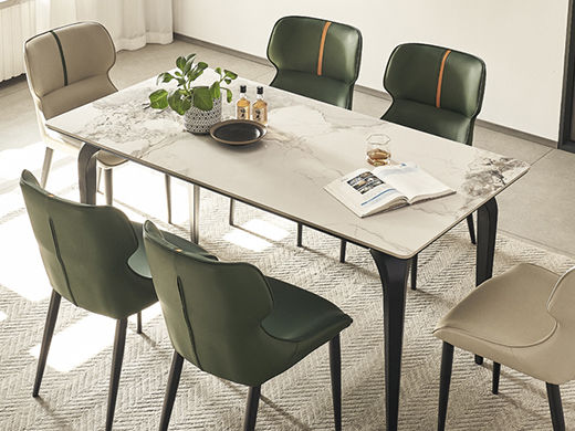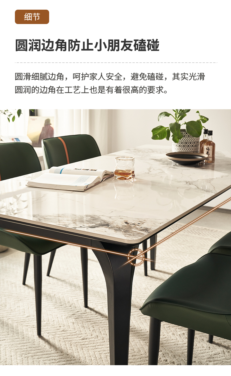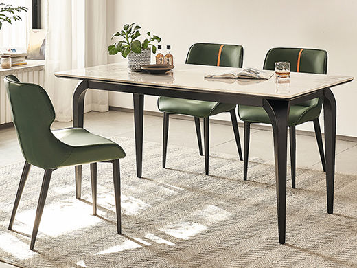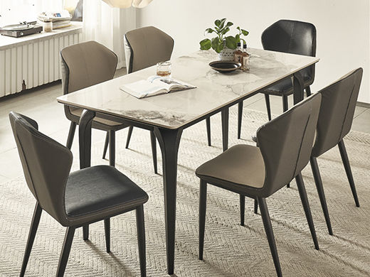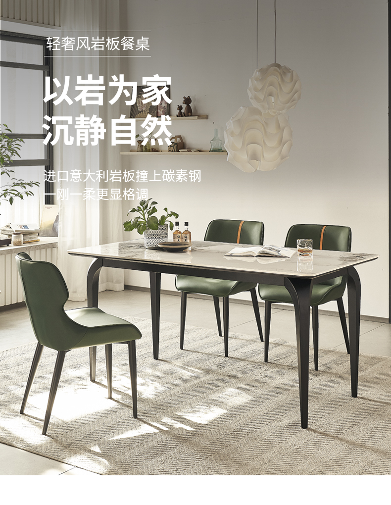 B系优选 现代简约 餐桌:碳素钢+岩板 餐椅:西皮+骨架:五金材质(桌架黑砂色) 1.35米餐桌+4把餐椅(不含底板)¥4008