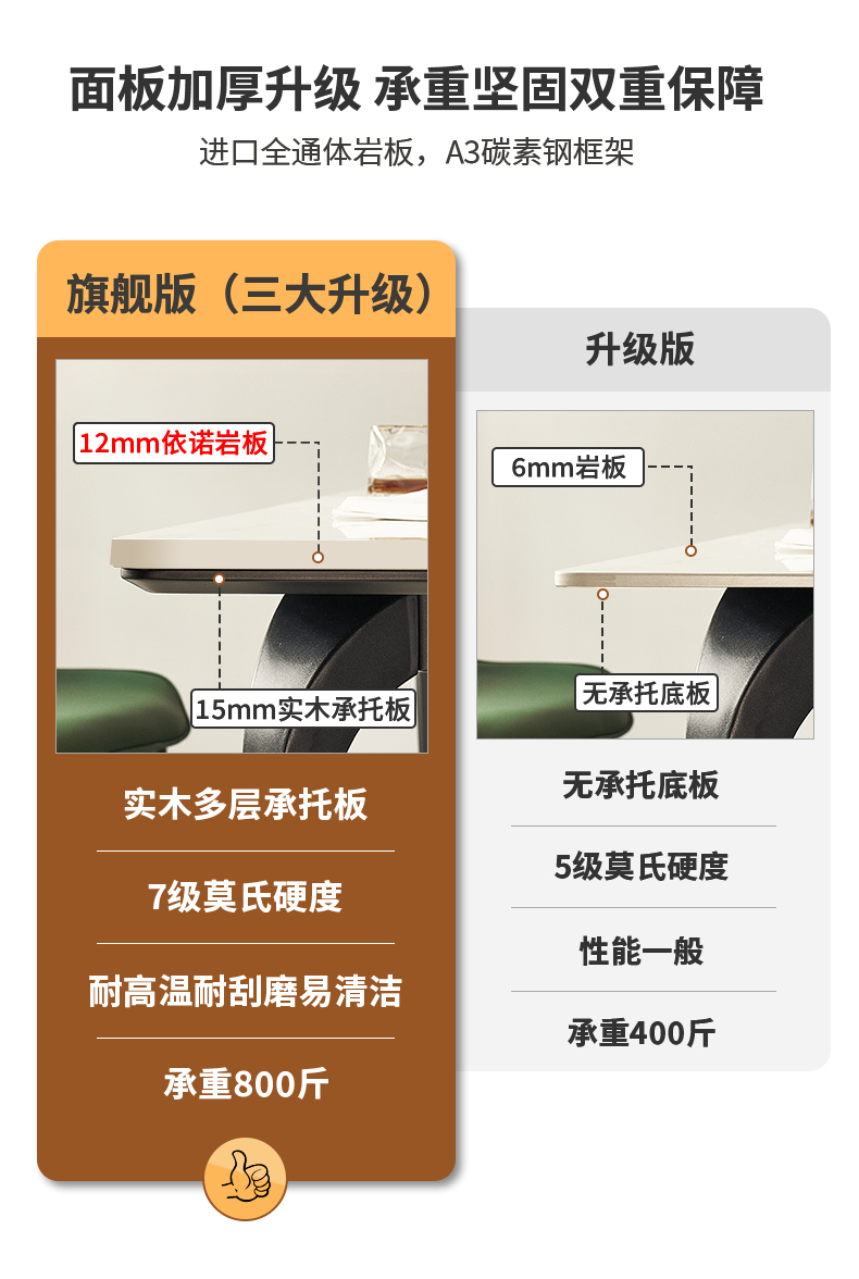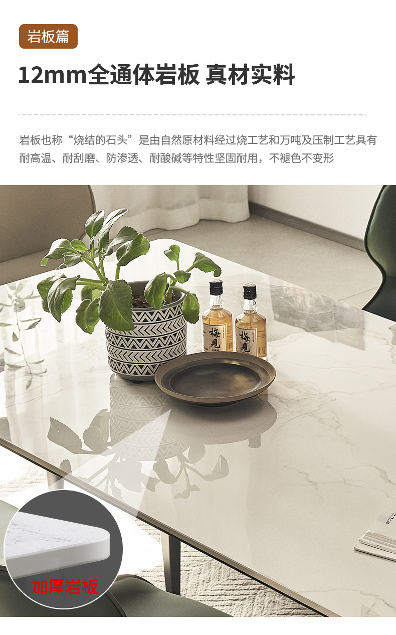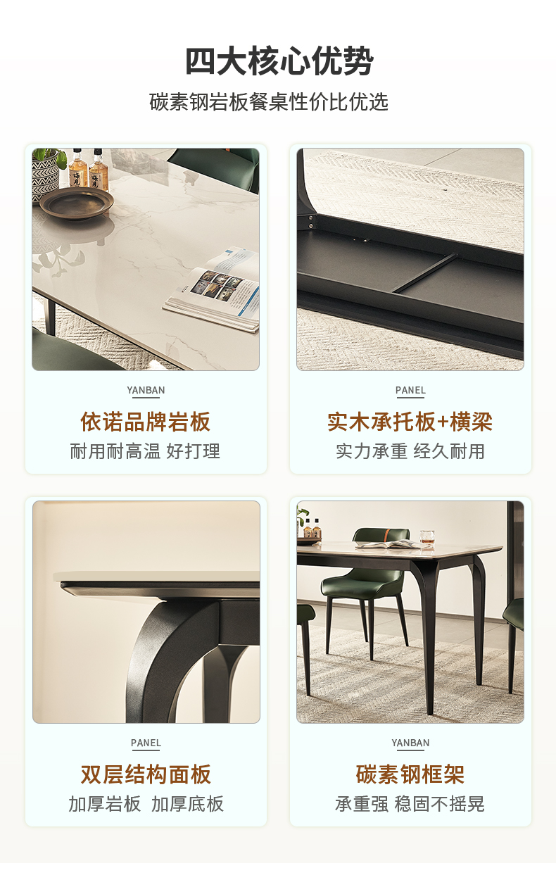 B系优选 现代简约 碳素钢五金脚+12mm岩板面 1.4米餐桌(含底板)¥4008