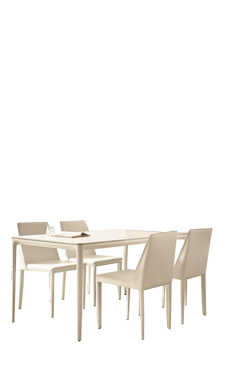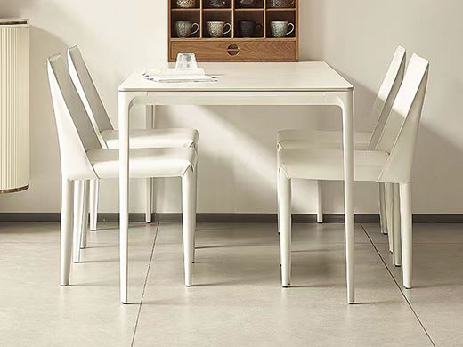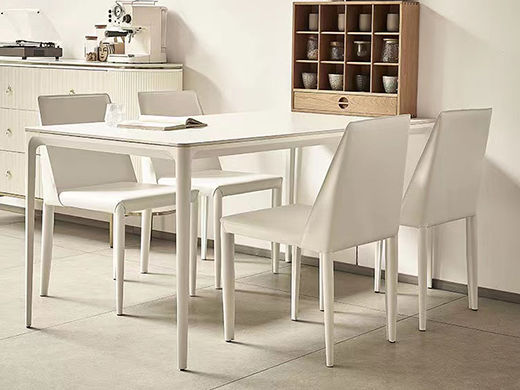 B系优选 奶油风 碳素钢底架+亮光/哑光 岩板面 1.4米餐桌+4把餐椅(含底板)¥1842
