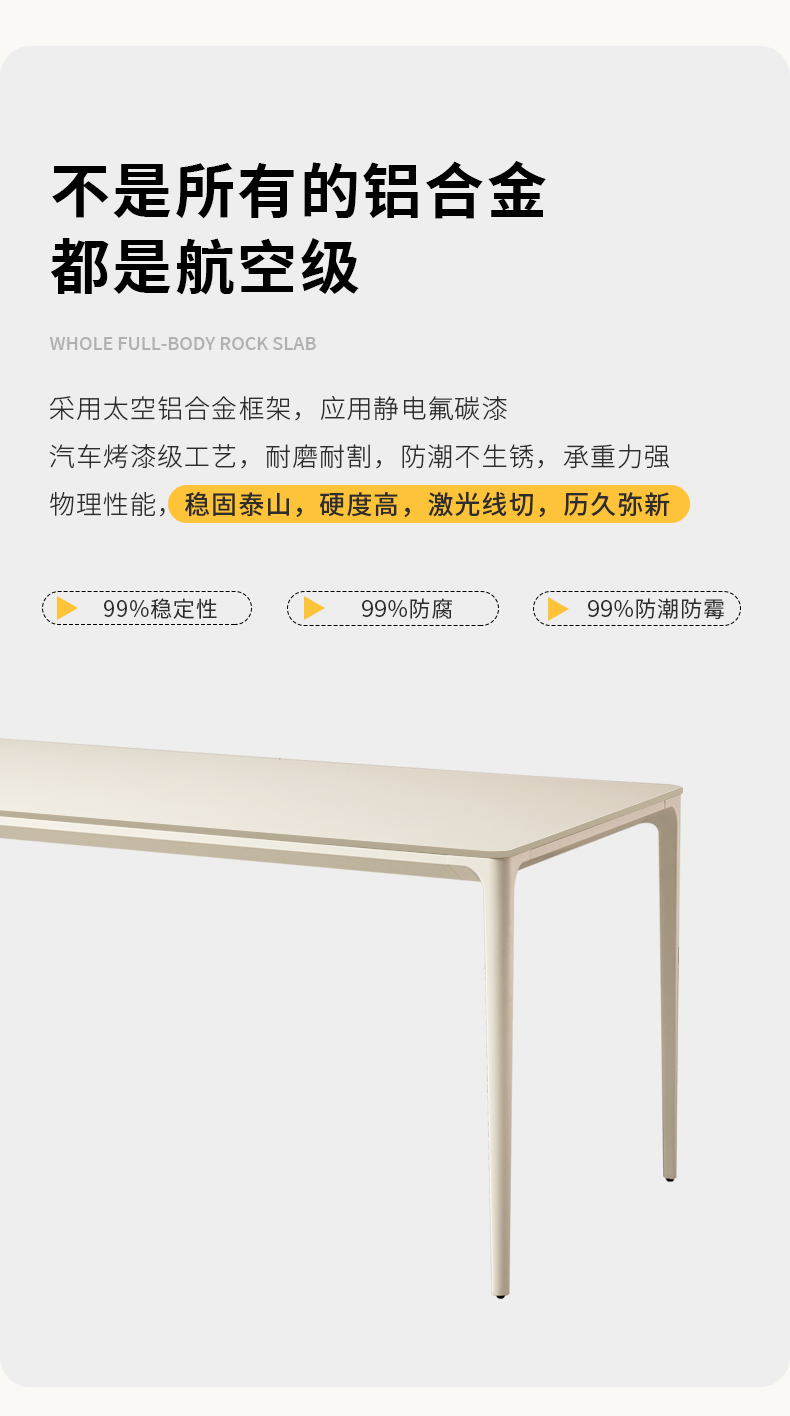 B系优选 奶油风 铝合金材质餐桌+岩板面 1.4米餐桌(不含底板)