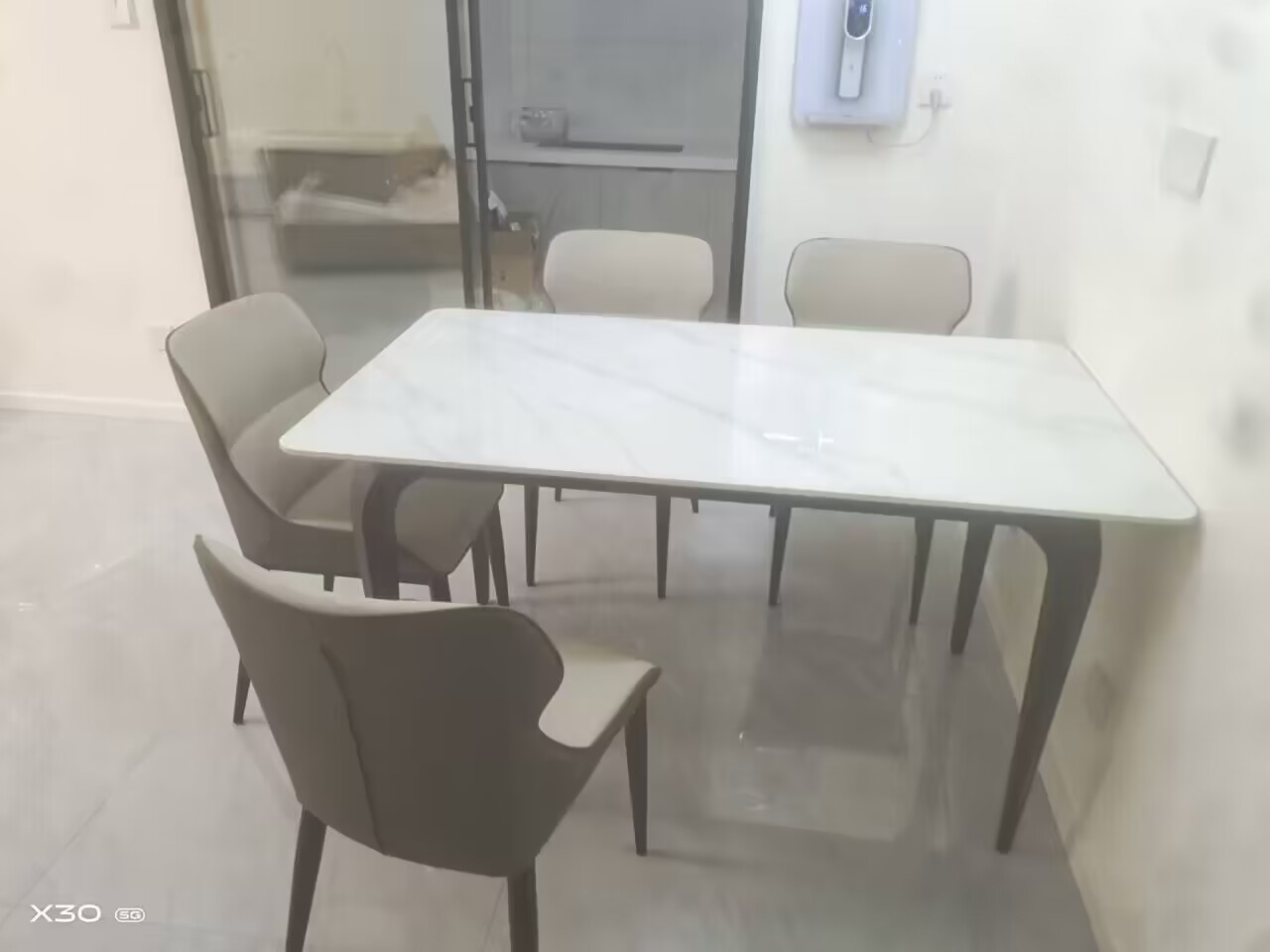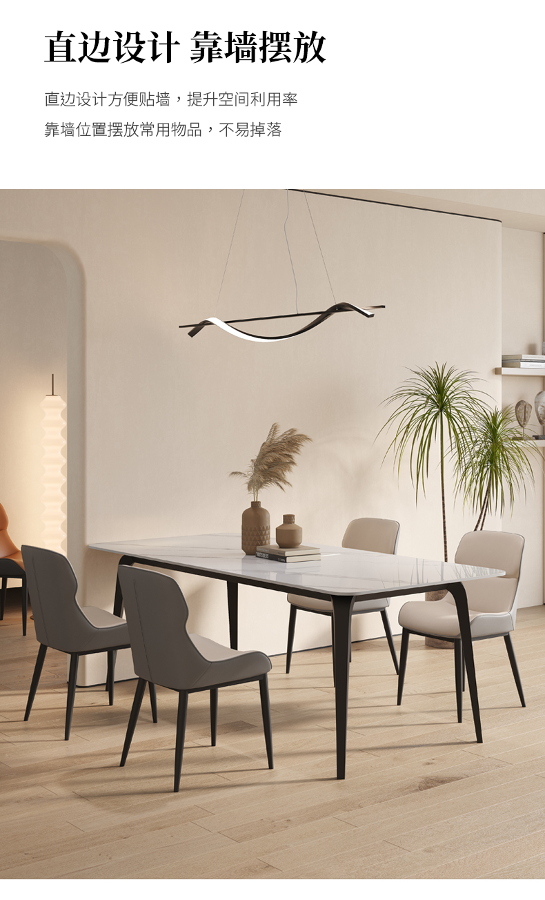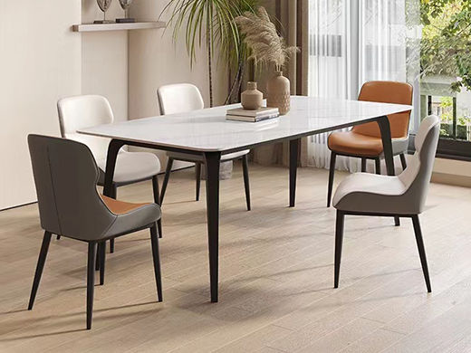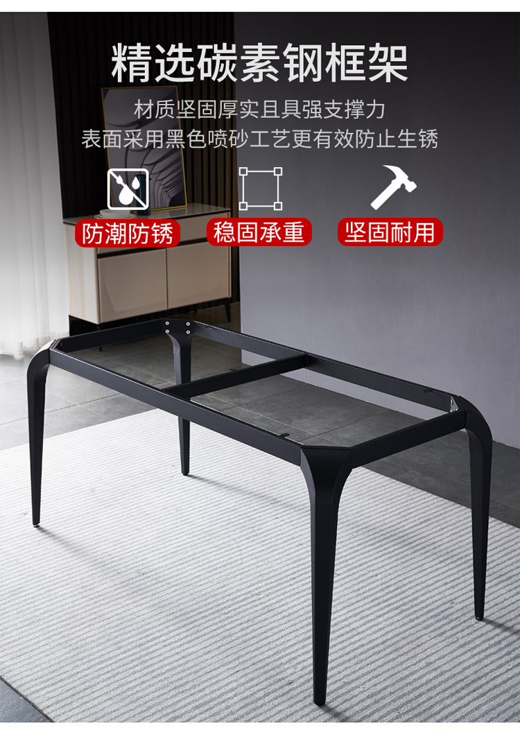 B系优选 现代简约 餐桌:碳素钢+岩板 餐椅:西皮+骨架:五金材质(桌架黑砂色) 1.35米餐桌+4把餐椅(不含底板)¥4008