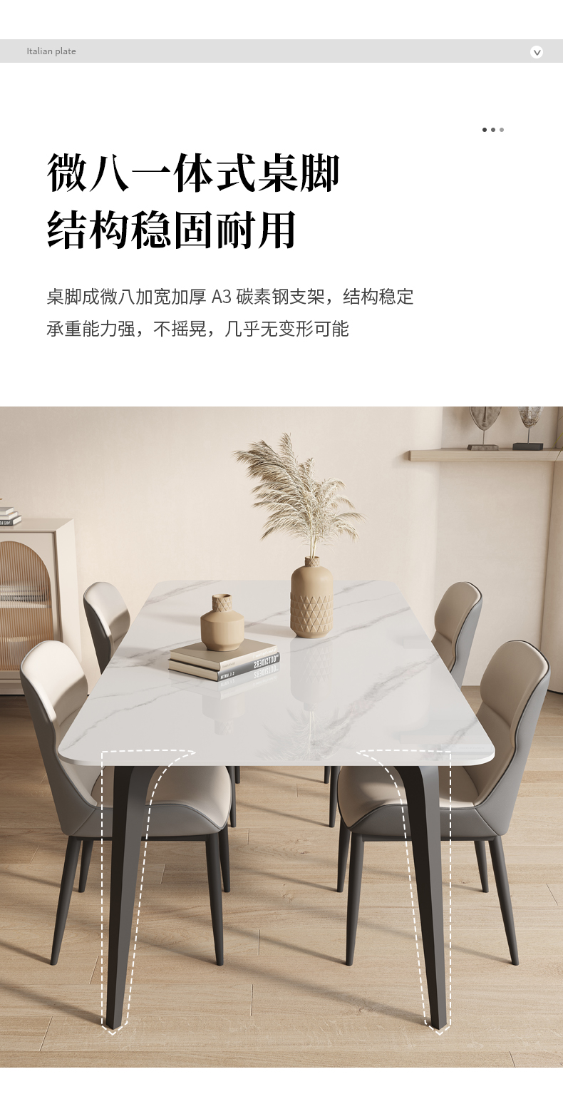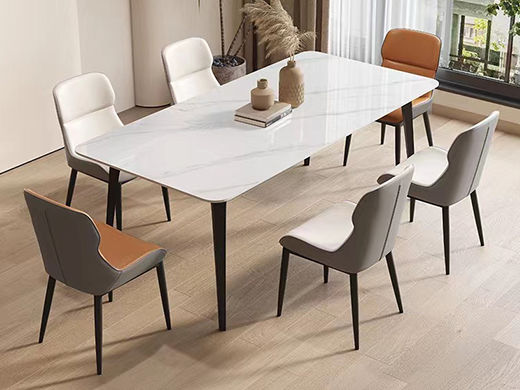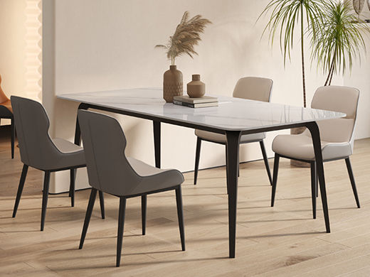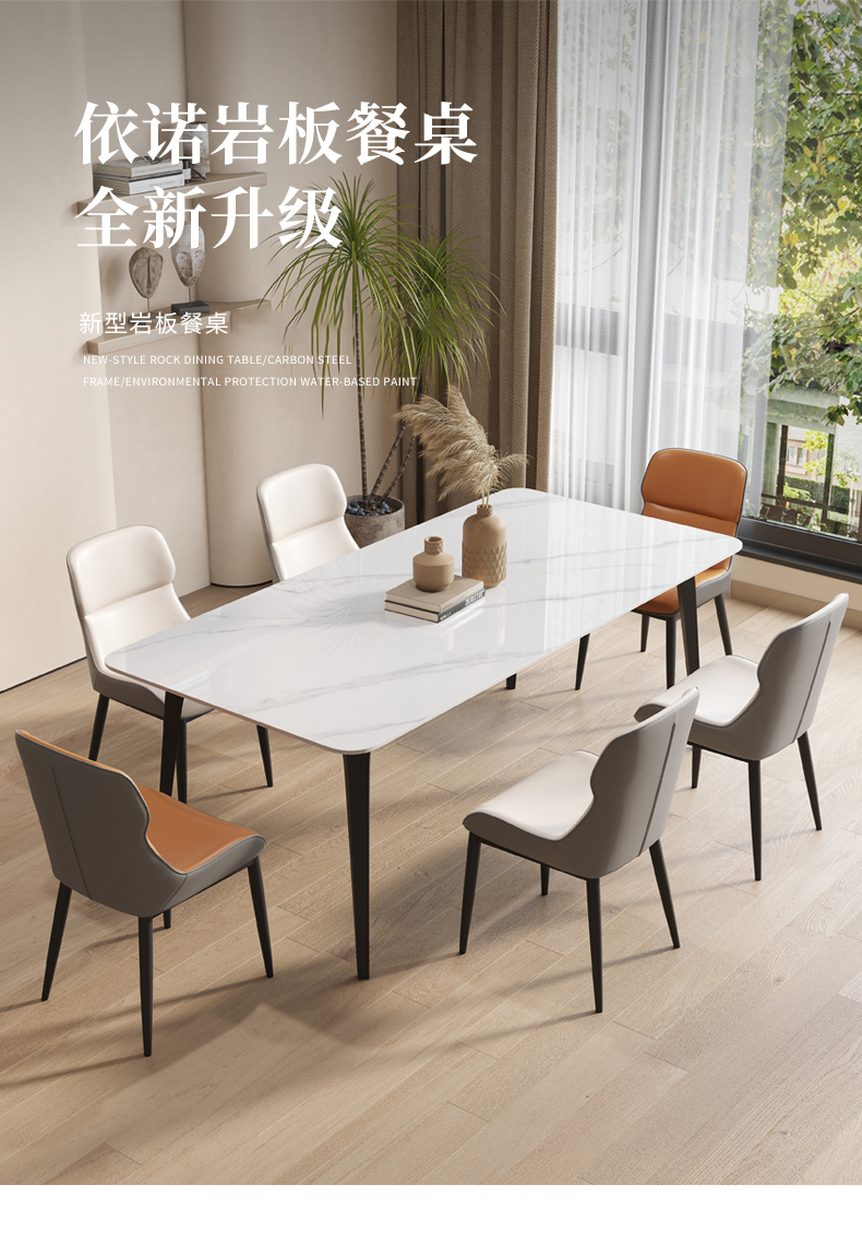 B系优选 现代简约 碳素钢五金脚+12mm岩板面 1.4米餐桌+4把餐椅(含底板)¥4008