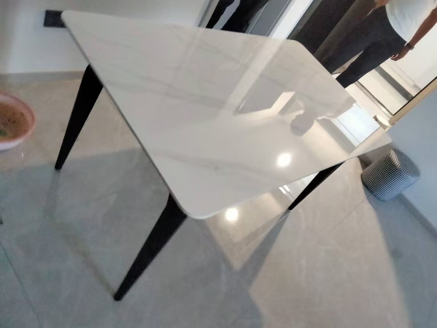 B系优选 现代简约 黑色碳素钢+实木多层板底板+亮光岩板 1.4米餐桌+4把餐椅(含底板)