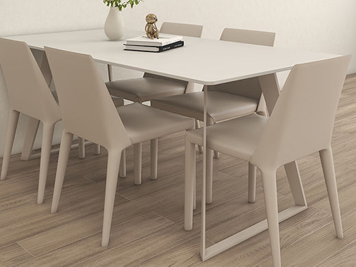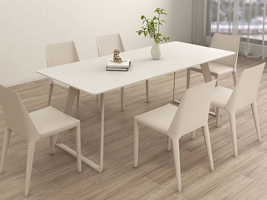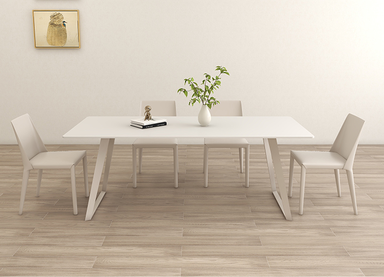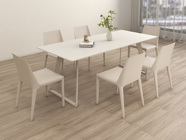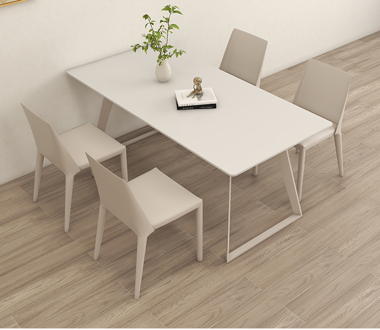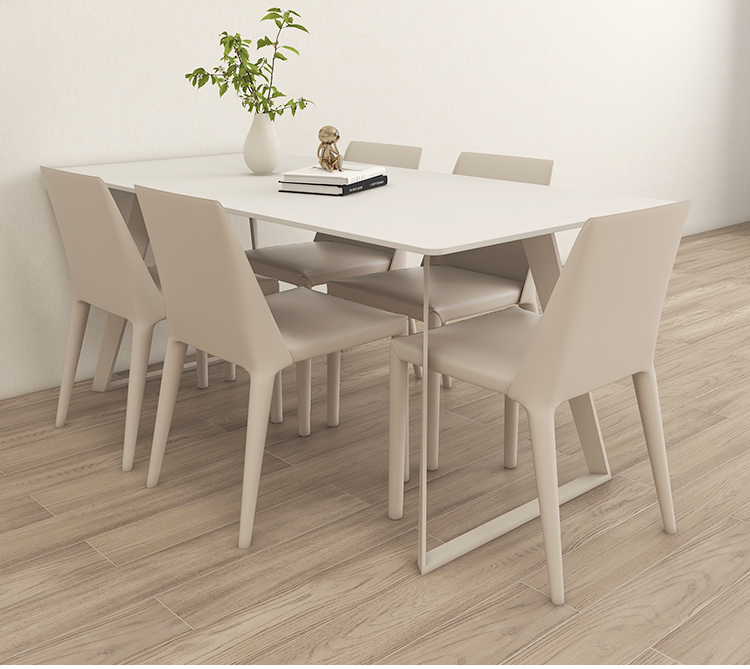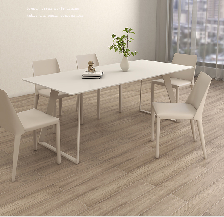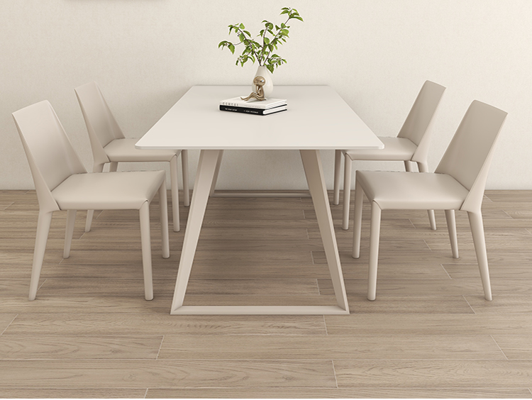 B系优选 奶油风 碳素钢底架+亮光/哑光 岩板面 1.4米餐桌+4把餐椅(含底板)
