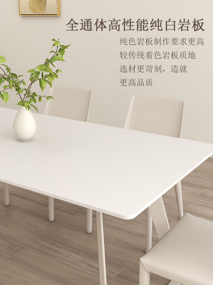 云端 奶油风 实木线条脚+实木多层板底板+哑光雪山石岩板 白色 1.4米餐桌¥3610