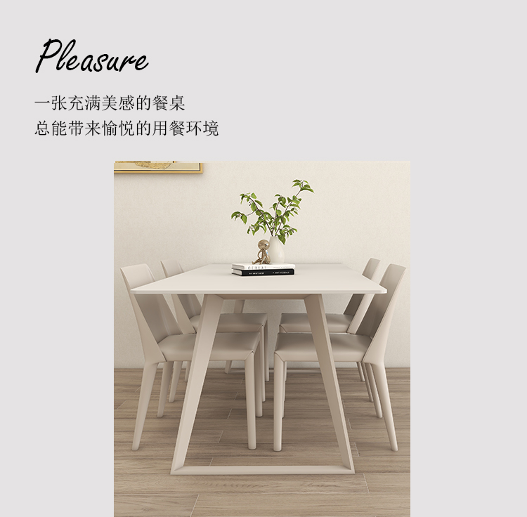 云端 奶油风 实木脚烤漆+亮光岩板面 多层板底板 奶白色 1.4米餐桌¥3446