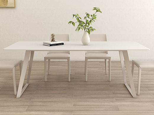B系优选 奶油风 碳素钢底架+亮光/哑光 岩板面 1.4米餐桌(包含底板)¥4008